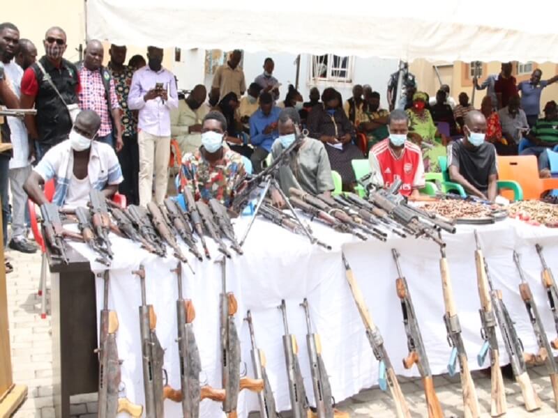 . A total of forty-five (45) sophisticated firearms and ammunition including 1-GPMG, 1-LAR rifle, 17-AK47 rifles, 2-Pump Action rifles, 20- locally fabricated firearms, 3-single barrel guns,9899- live ammunition of different calibers, 80-fake vehicle number plates, 1- Toyota Camry with Reg. No. AA 792 HJA and 1-Toyota Corolla LE with Reg. No. QAP 622 AA, were recovered from the suspects in the operations.